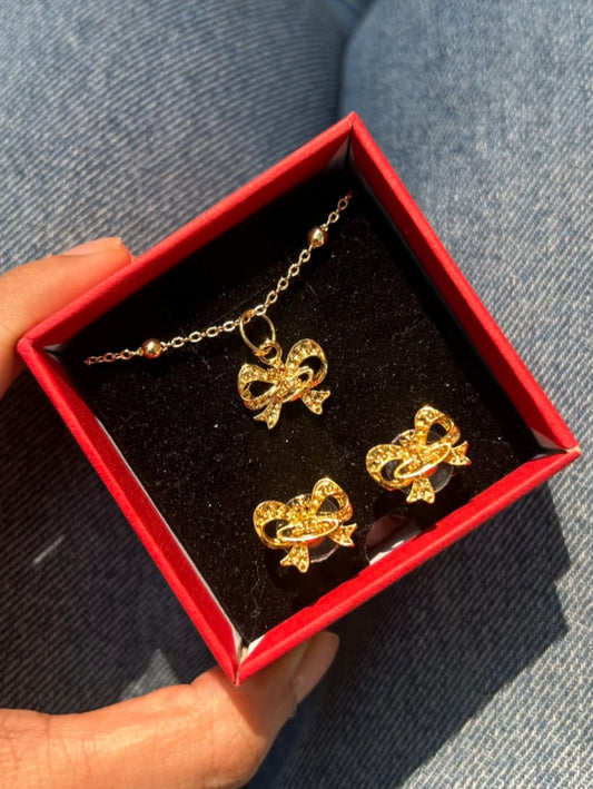 Orb Bow Necklace & Earrings Set
